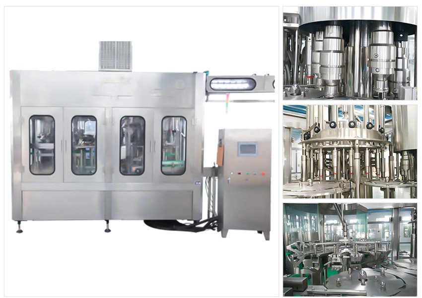 ? ? ? ?果汁灌裝機(jī)適用于果汁、茶飲料、功能飲料及果味奶飲料的灌裝。在溫度控制器的幫助下,該機(jī)器能夠進(jìn)行80-95度高溫?zé)峁嘌b。本設(shè)備采用瓶頸懸掛技術(shù),適用于各種瓶型,更換瓶型只需調(diào)節(jié)傳送鏈的高度即可,方便快捷。全機(jī)PLC控制變頻調(diào)速,自動(dòng)化程度高,自動(dòng)控制進(jìn)液,液位控制準(zhǔn)確,無(wú)滴漏。與物料接觸部分均為食品級(jí)304優(yōu)質(zhì)不銹鋼。是飲料廠家的優(yōu)選產(chǎn)品。